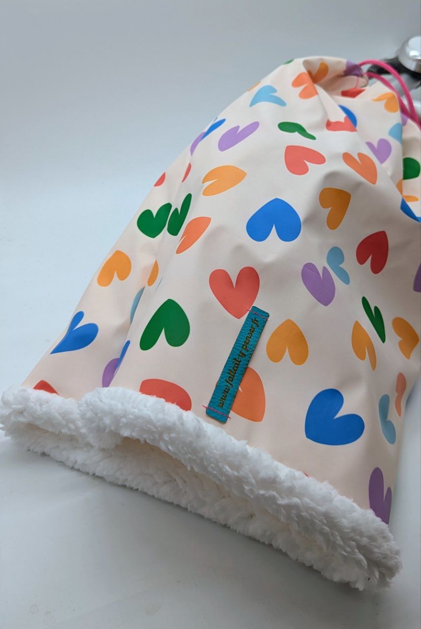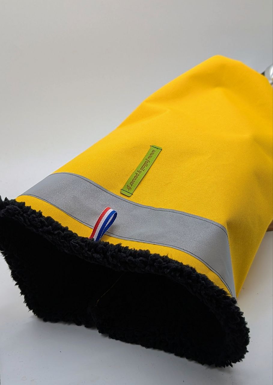 Les manchons « adulte + » sont réalisés dans un tissu imperméable de qualité supérieur, doublés de moumoute ou fausse fourrure, les cordons sont terminés par des glands .